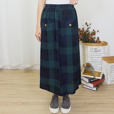 Hana-Mokuba花木馬日系女裝鬆緊腰日系休閒格紋長裙_綠格$2,080