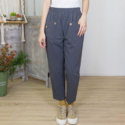 Hana-Mokuba花木馬日系女裝鬆緊腰貓咪造型口袋休閒點點長褲_焦糖/ 土黃/ 鐵灰$1,380