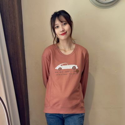 Hana-Mokuba花木馬日系女裝寬鬆落肩不對稱剪裁休閒大學T_焦糖$990