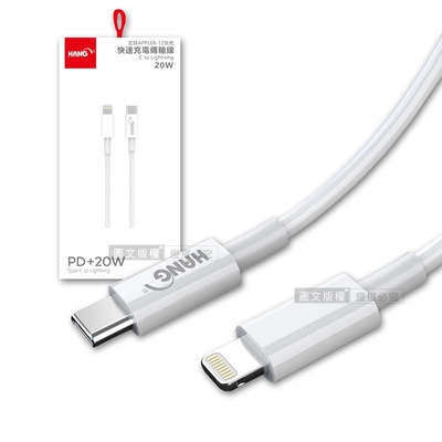 HANG PD+20W閃充線 iPhone Type-C to Lightning傳輸充電線 數據線(100CM)$19683折
