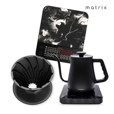【Matrix X HARIO】M2 Pro AI大師 咖啡秤+α 阿爾法錐形凹肋陶瓷濾杯01黑+溫控細口壺650ml 組合$6,580