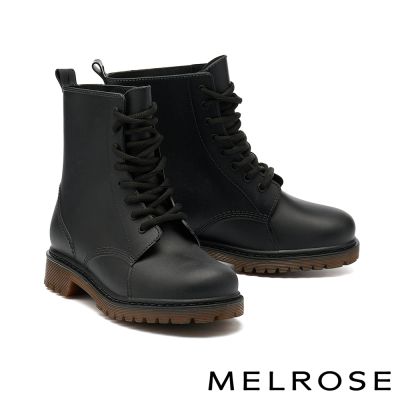 長靴 HELENE_SPARK 率性時髦鈕釦軟羊皮方頭低跟長靴-黑