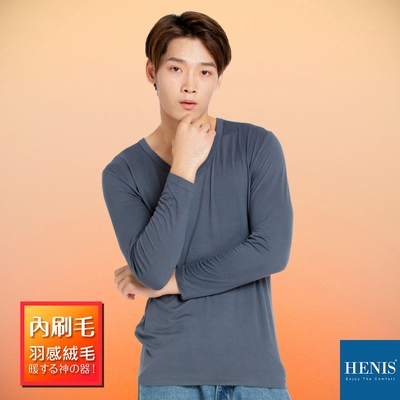 HENIS 保暖x透氣雙機能 刷毛保暖衣 男款V領 (灰色)$249