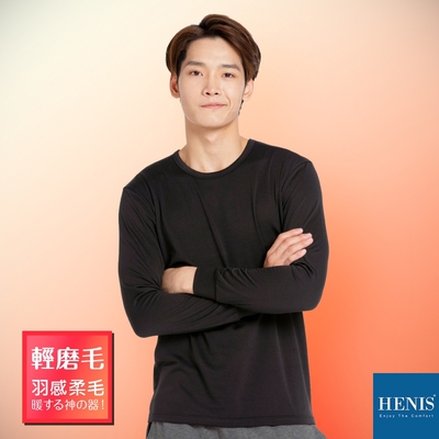 HENIS 保暖x透氣雙機能 磨毛款 保暖衣 男款圓領 (黑色)$249
