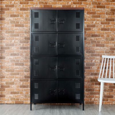 Homelike 喜家居鋼製玻璃置物櫃(黑色)(2003)-80x40x102 公分