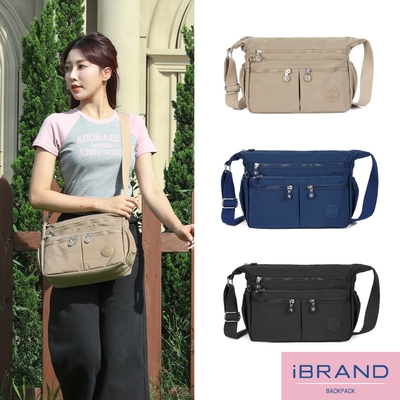 iBrand側背包 輕盈防潑水多收納斜側背包(多色任選)