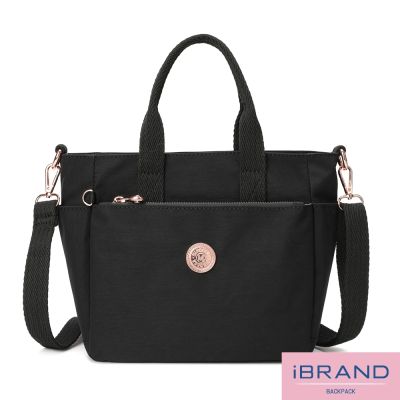 iBrand托特包 輕盈多隔層2WAY防潑水尼龍側背包-百搭黑
