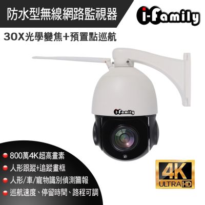 主機及鏡頭二年保固,服務有保障【宇晨I-Family】IF003C 兩年保固 4K高畫素 全鋁金屬殼 30倍變焦 自動巡航 人形追蹤 無線網路監視器$6,9905(1)升級購