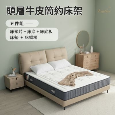 IDEA-坦雅標準雙人5尺質感皮革床架組(床頭+床底)