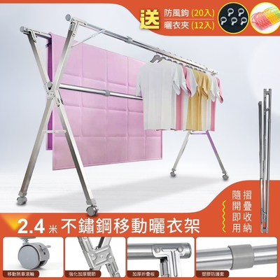 IDEA-第二代升級版滾輪2.4米摺疊伸縮曬衣架