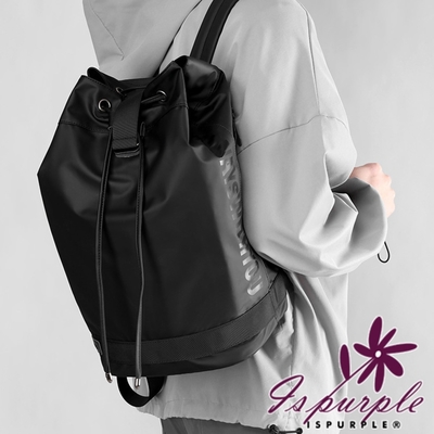 iSPurple 慵懶風格 休閒通勤拉繩斜垮尼龍肩背包 米白