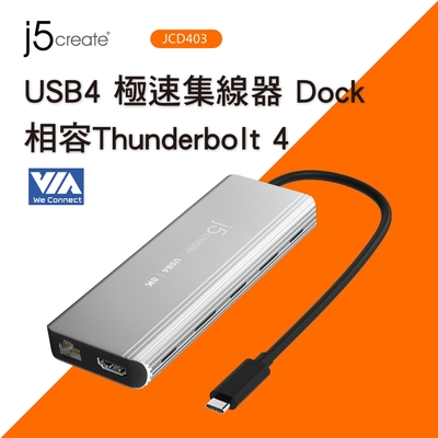 券j5create USB4 極速集線器 Dock ( 8K60/4K144 HDMI, 2.5G網路, 10Gbps ) - 相容Thunderbolt 4-JCD403