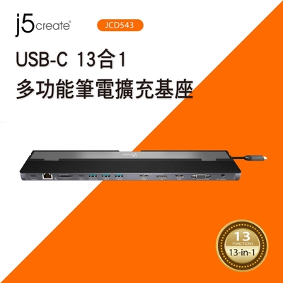 j5create USB-C 13合1多功能筆電擴充基座 HUB-JCD543