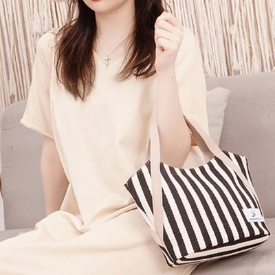 JC Collection 日系簡單鍾愛直條紋帆布夏日感輕量實用手拎包托特包(黑條紋、藍條紋)$290