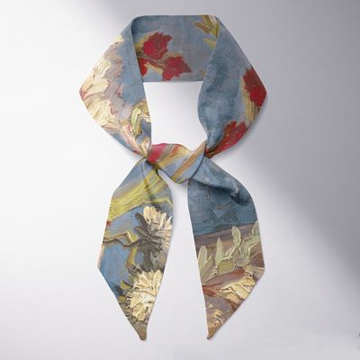 【JC Collection】油畫法式絲巾髮帶綁包裝飾細窄長條領巾(鳳凰花、田園綠意、蔦尾花)