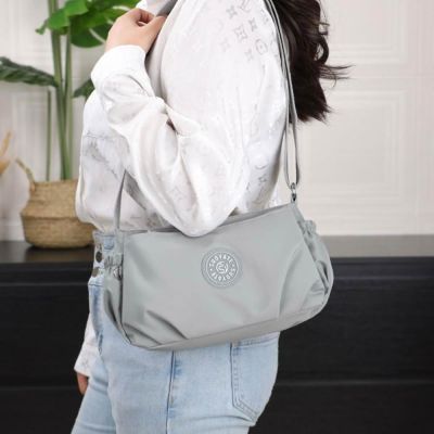 【JC Collection】防潑水尼龍布簡單輕便造型多隔層大容量休閒側肩斜背包(淺灰藍、淡紫)