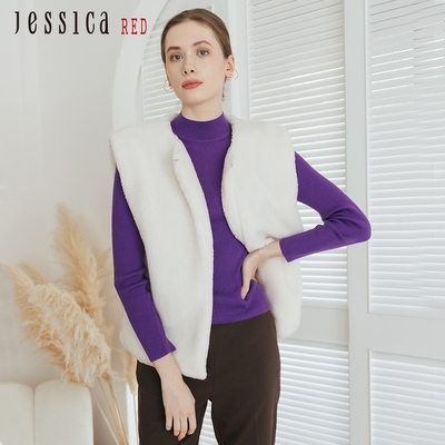 JESSICA RED - 簡約百搭保暖絨毛背心馬甲824491(白)$611