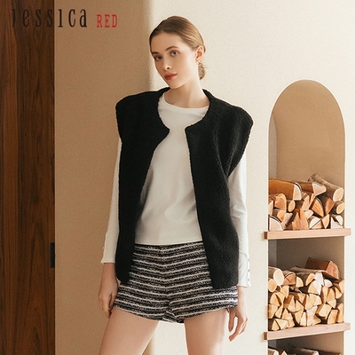 JESSICA RED - 簡約百搭保暖絨毛背心馬甲824491(黑)$611