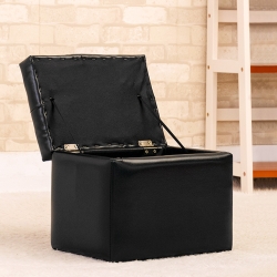 JP Kagu 日式時尚皮沙發椅收納椅-黑(BK32113)
