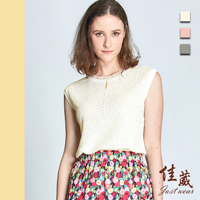 【佳葳Justwear】素雅編織無袖上衣 3色(女上衣/女上著/背心/棉質/素色/氣質/優雅/拼接/珍珠/透膚)$500