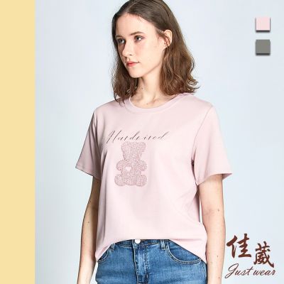 【佳葳Justwear】閃亮小熊棉質T恤 2色(女上衣/女上著/短袖/素色/文字/刺繡/休閒/百搭)$800
