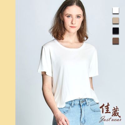 【佳葳Justwear】親膚涼感超彈素T 4色(女上衣/女上著/素色/短袖/T恤/百搭/輕薄/多色)$400