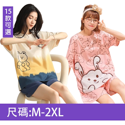 [韓國精品組合]【韓國K.W.】海島棉舒適柔感居家睡衣(睡衣/睡裙/家居服/涼感睡衣/連身睡衣)