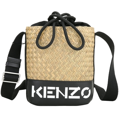 KENZO Raffia 字母拼接拉菲草編織斜背水桶包(黑色)