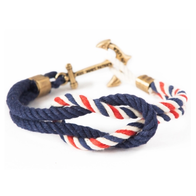 Kiel James Patrick 船錨水手繩結單圈手環 深藍/藍紅白編織
