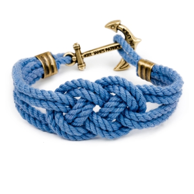 Kiel James Patrick 美國手工船錨棉麻繩結手環 淺藍卡里克結編織