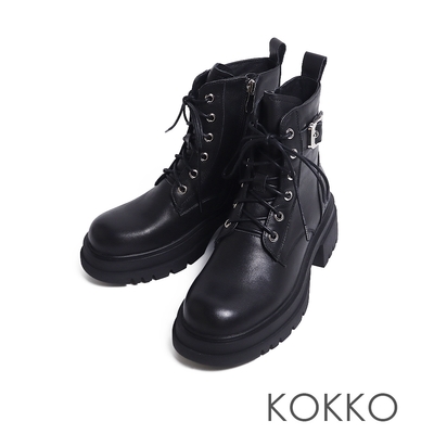 KOKKO個性帥氣綁帶微寬楦厚底短靴黑色$2,26885折