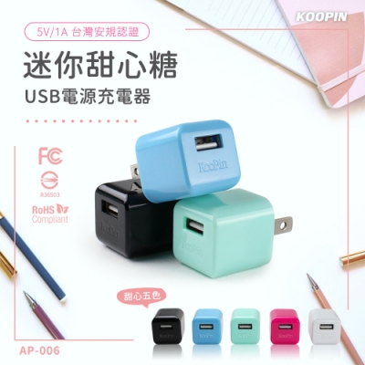 KooPin 迷你甜心糖 USB電源充電器 5V/1A-台灣安規認證(二入)$2368折