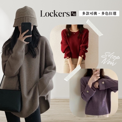 【Lockers 木櫃】嚴選韓系毛衣(寬鬆慵懶/圓領紐扣/羊毛針織)