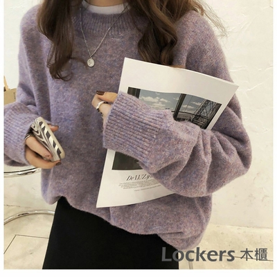 【Lockers 木櫃】秋冬圓領寬鬆慵懶毛衣 L113111203