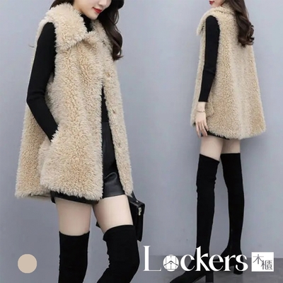 【Lockers 木櫃】秋冬羊羔毛絨寬鬆背心 L113110701