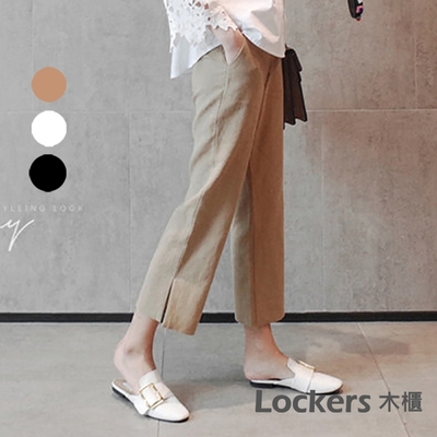【Lockers 木櫃】韓版棉麻寬鬆九分直筒褲-3色 L11008031