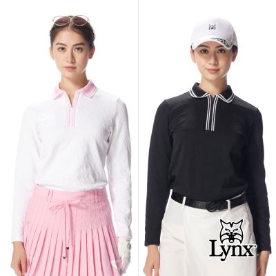 【Lynx Golf】首爾高桿風格!女款合身版吸溼排汗格紋緹花配布剪接素面造型長袖圓領POLO衫/高爾夫球衫(二色)$1,872
