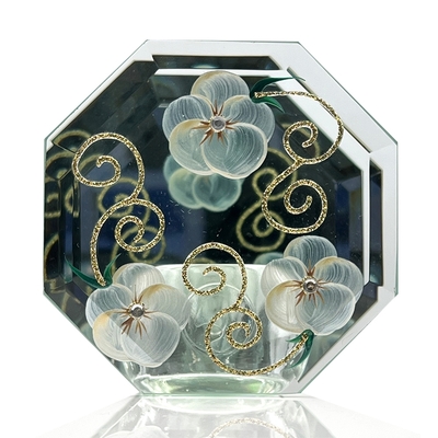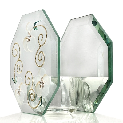 Madiggan 貝斯麗 玫瑰手工彩繪玻璃八卦型開運鏡面燭台
