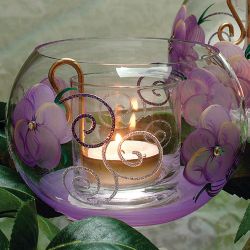 紫紅色鬱金香彩繪玻璃開運碗