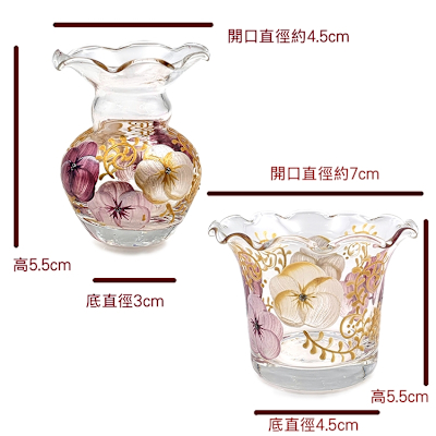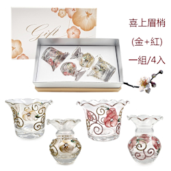 Madiggan 貝斯麗 玫瑰手繪彩色玻璃小花瓶-喜上眉梢(金色+紅色)4件組/禮盒(買1送1)