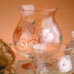 粉玫瑰彩繪玻璃大橢圓花瓶