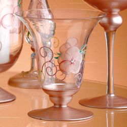 Madiggan貝斯麗 粉色玫瑰手工彩繪寬口短腳燭杯-買一送一