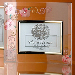 Madiggan玫瑰手工彩繪橫式玻璃相框(粉紅.紫色.金黃三色任選)