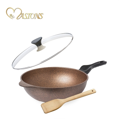 【MASIONS 美心】鼎鈦鍋四代-韓國MEGA STONE耐磨不沾炒鍋+蓋+竹鏟(32CM)