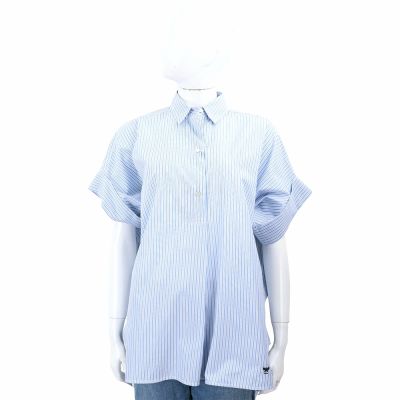 Max Mara-WEEKEND ARDEA 藍條紋棉質寬版短袖府綢襯衫 上衣