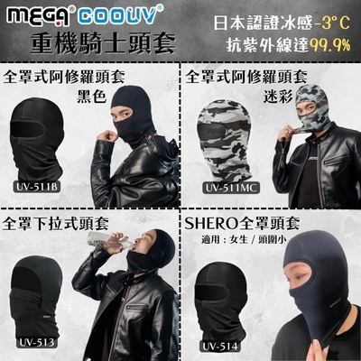 【MEGA COOUV】日本防曬涼感頭套 全罩式/網狀下拉式頭套 兩款任選 安全帽頭套 騎士頭套 UV-511