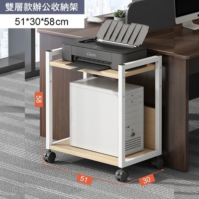 【MINE 家居】多功能附輪主機架 多層收納辦公置物架 雙層款 51x30x58cm(多層置物架 主機架 辦公室推車)$642