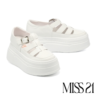 休閒鞋 MISS 21 簡約率性魚骨編牛皮超厚休閒鞋-白