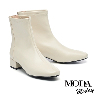 短靴 MODA MODAY 極簡柔美彈力純色方頭Q底低跟短靴-白