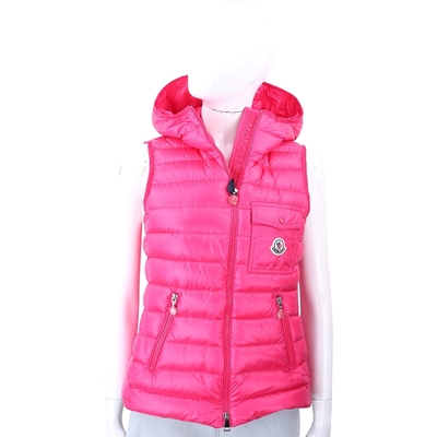 MONCLER GLYGOS 絎縫口袋設計桃紅色連帽羽絨背心